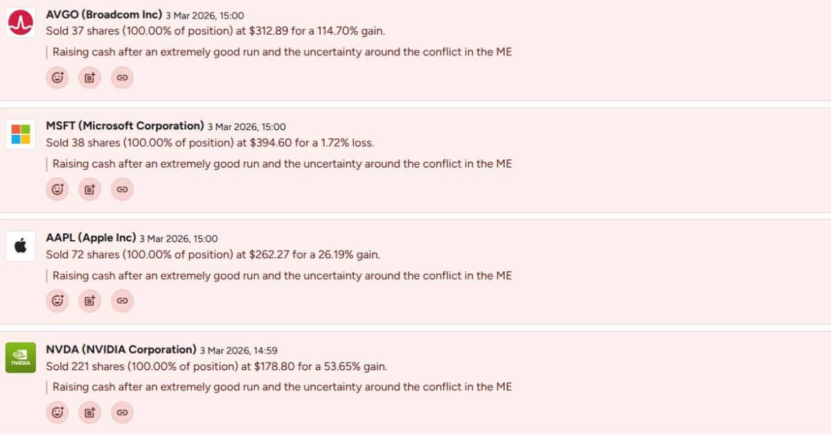 On 3rd March, I made the decision to liquidate every single position in the North Tech 15. Since we launched on 24th August, the portfolio has gained 47.62%, compared to 25.52% for the S&P 500. For anyone managing their own SIPP or ISA, those are the kind of gains that demand protection. While many investors were still focused on the AI rally, the escalating conflict involving Iran introduced a level of systemic risk that the market simply hadn't priced in. I didn't sell because I lost faith...